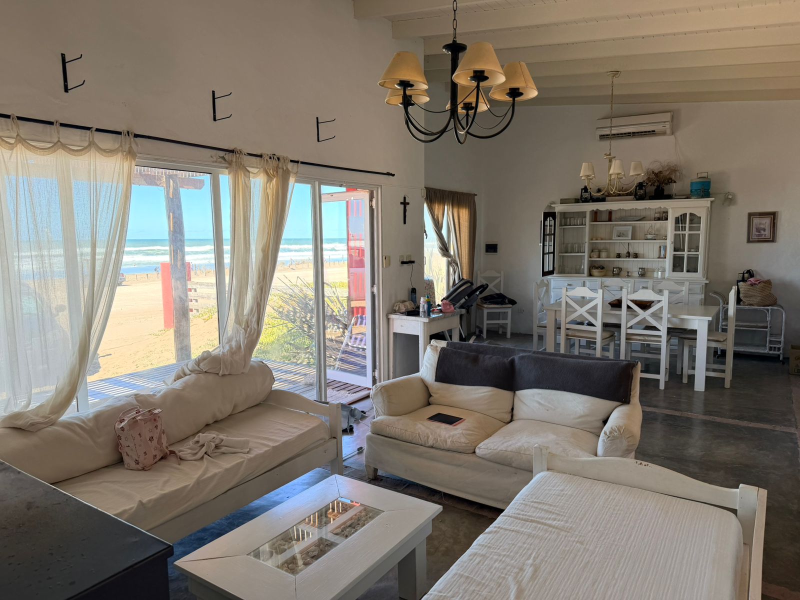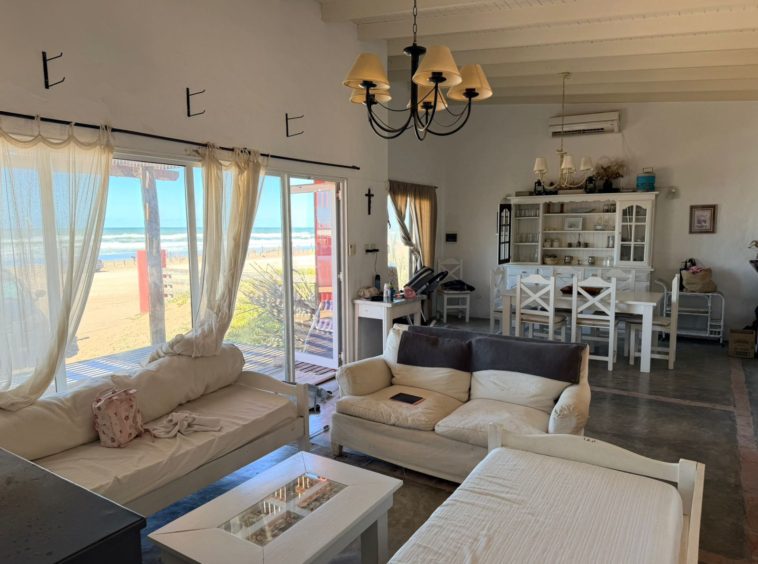 A metros del mar, amplia casa en dos plantas, luminosa, vista al mar(es el patio de tu casa) aunque también tiene patio con parrilla, cocina integrada con barra a amplio comedor, y living muy cómodo, tres baños, tres dormitorios, terraza, visitarla es comprarla .