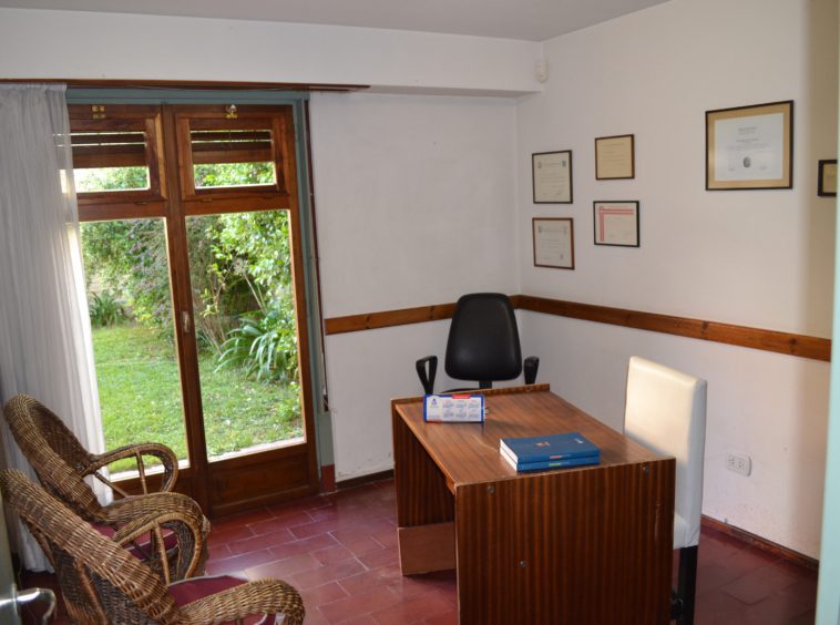 Casa en dos plantas, planta baja: hall de entrada, recepción, baño, kitchenette, sala juntas y dos despachos. Jardín, lavadero baño de servicio y garaje. Del garaje se accede a la casa en planta alta: tres dormitorios con placares, pisos de parket, aberturas carpintería de obra, cocina comedor diario y living amplio con hogar. Revestimiento exterior y interior muebles de cocina y aberturas exteriores de cedro, calefacción central frio y calor, sistema de alarma en ambas plantas, pisos hidro laqueados.
