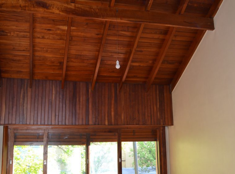 Sobre terreno de 9×22 mts, son 230 m2 construidos. 45 años antigüedad, techo tejas adelante y canalón atrás.
